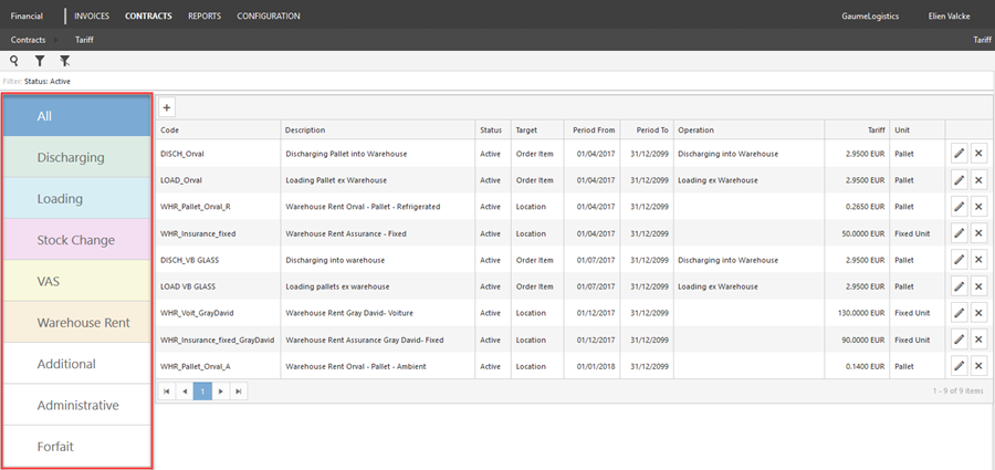 An overview of all existing tariffs appears. Choose a category to filter the tariffs.